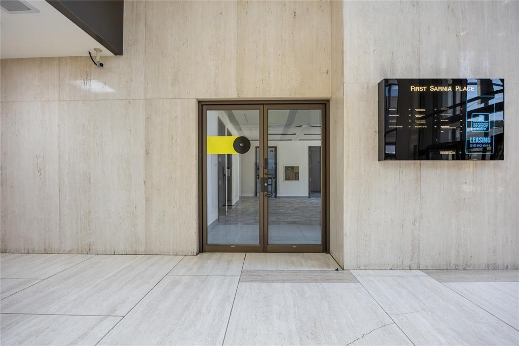 PRIME COMMERCIAL LEASE OPPORTUNITY AT FIRST SARNIA PLACE! THIS MAIN-FLOOR UNIT OFFERS 2,061 SQ FT OF LUXURY SPACE WITH A MODERN, FULLY FINISHED INTERIOR. FEATURES INCLUDE 3 FULL OFFICES, A KITCHEN WITH STUNNING VIEWS OVERLOOKING THE ST. CLAIR RIVER, AND A LARGE OPEN-CONCEPT WORK AREA WITH FLEXIBLE DESIGN POTENTIAL. ENJOY TALL CEILINGS, FLOOR-TO-CEILING WINDOWS WITH HIGH-VISIBILITY STREET EXPOSURE, AND EXTERIOR SIGNAGE OPTIONS. LEASE INCLUDES ACCESS TO AN ON-SITE FITNESS FACILITY, AND A COMMON ROOM FOR EVENTS OR NETWORKING. UNDERGROUND & EXTERIOR ON-SITE PARKING AVAILABLE. ESTIMATED TMI: $16.39 PSF + HST, INCLUSIVE OF OPERATING COSTS, REALTY TAXES, UTILITIES, JANITORIAL, MAINTENANCE, ELEVATOR SERVICE, SNOW REMOVAL, AND MORE.